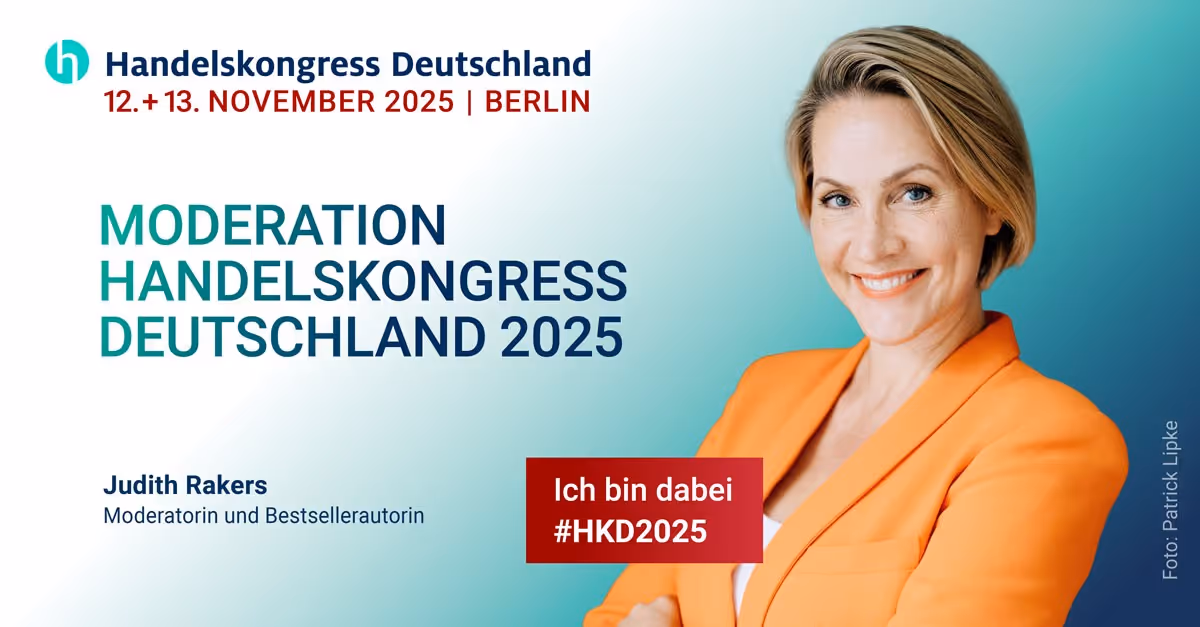 Auch in diesem Jahr wird Judith Rakers den Handelskongress Deutschland am 12. und 13. November 2025 in Berlin moderieren. Mit ihrer Kompetenz, Souveränität und einem feinen Gespür für Themen und Menschen führt sie durch beide Kongresstage und schafft den passenden Rahmen für inspirierende Inhalte und lebendige Diskussionen.