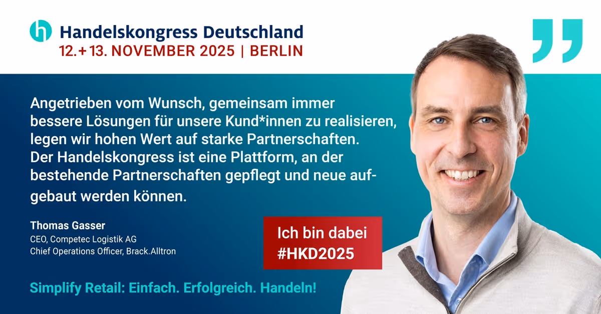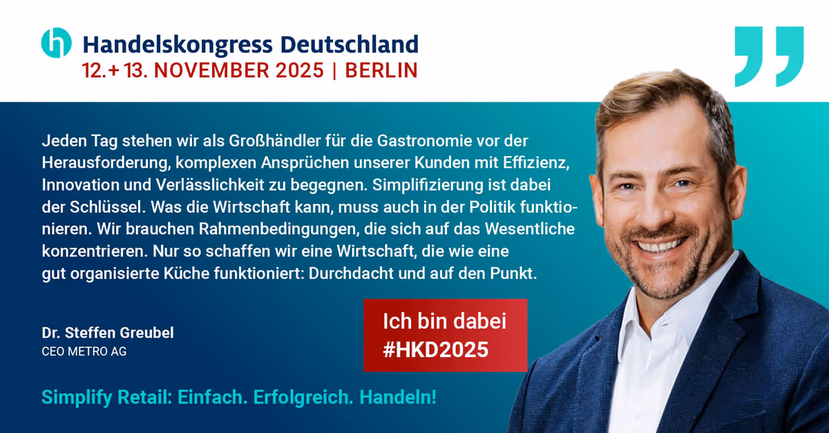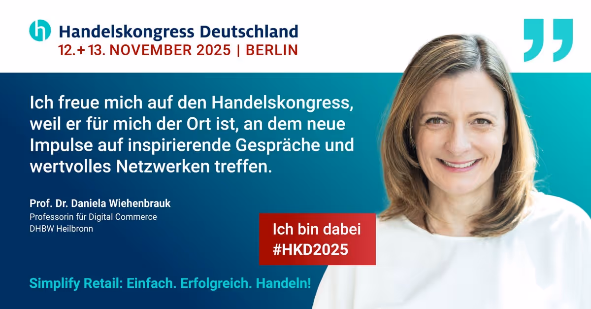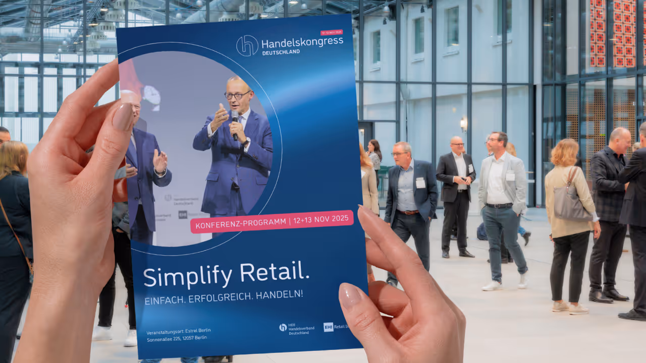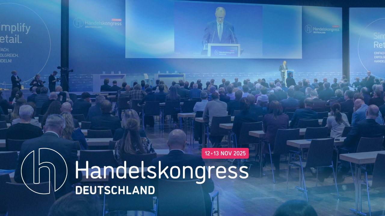 Der Handelskongress Deutschland 2025 ist vorbei! Am 12. und 13. November unter dem Motto „Simplify Retail: Einfach. Erfolgreich. Handeln!“ traf sich die Handelsbranche in Berlin, um gemeinsam die Zukunft zu gestalten. Zwei Tage voller Ideen, intensiver Gespräche und wertvoller Begegnungen haben einmal mehr gezeigt, wie entscheidend Austausch, Offenheit und Zusammenarbeit sind. Ein herzliches Dankeschön an alle Teilnehmenden, Speaker:innen und Partner, die den Kongress zu einem besonderen Erlebnis gemacht haben. Wir freuen uns auf ein Wiedersehen im nächsten Jahr!
