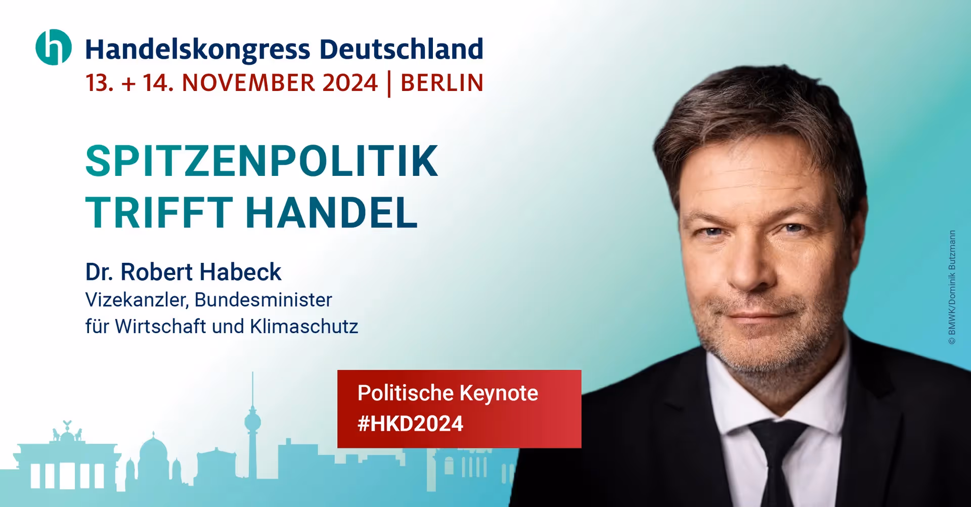 Mit großer Freude dürfen wir bekannt geben, dass der Vizekanzler und Bundesminister für Wirtschaft und Klimaschutz Dr. Robert Habeck, eine Politische Keynote auf dem Handelskongress Deutschland 2024 halten wird.
