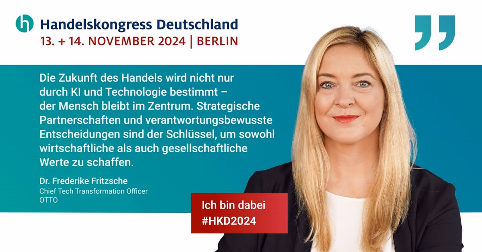 Wir freuen uns sehr, Dr. Frederike Fritzsche von Otto GmbH & Co. KGaA erneut beim Handelskongress Deutschland willkommen zu heißen. Im Rahmen eines unserer hochkarätigen Strategieforen wird Dr. Frederike Fritzsche spannende Einblicke in die Rolle von KI und Daten für den kulturellen Wandel geben. Wir sind gespannt auf erkenntnisreiche Impulse und lebendige Diskussionen darüber, wie Technologie und Kultur gemeinsam echte Transformation ermöglichen.
