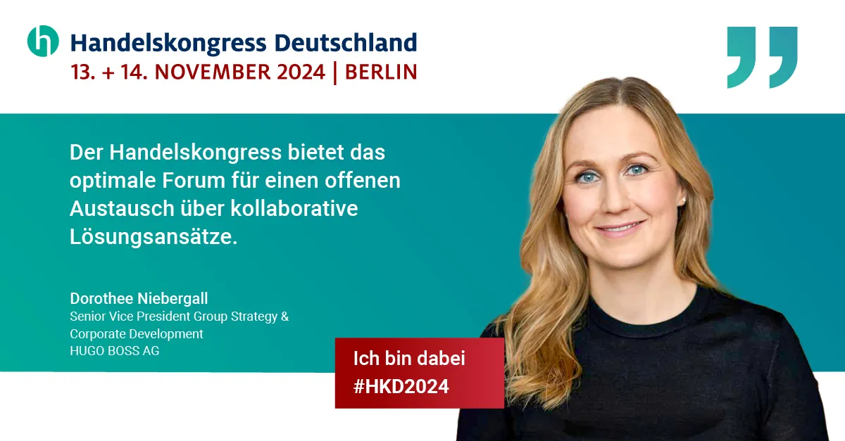 Wir freuen uns außerordentlich, Dorothee Niebergall, Senior Vice President Group Strategy & Corporate Development bei HUGO BOSS, als Referentin für den Handelskongress auf unserer Bühne willkommen zu heißen.