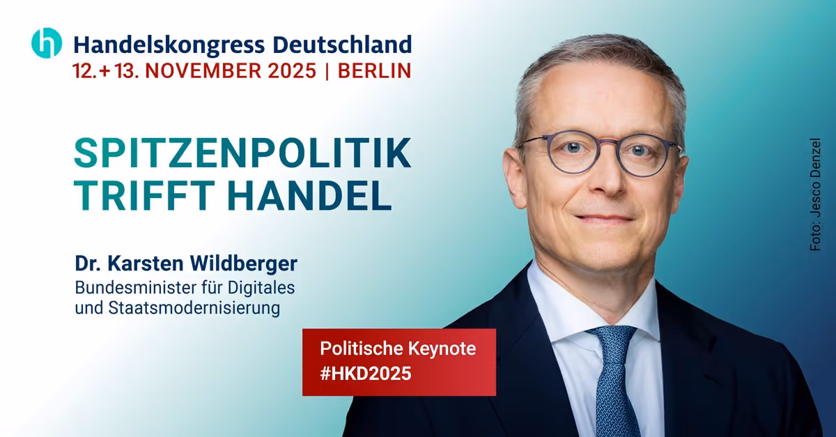 Mit großer Vorfreude blicken wir auf den Besuch des Bundesministers für Digitales und Staatsmodernisierung Dr. Karsten Wildberger beim Handelskongress Deutschland 2025. Sein Auftritt verspricht nicht nur eine inspirierende politische Keynote, sondern auch einen substanziellen Dialog über die Zukunft von Digitalisierung, Wirtschaft und Handel.