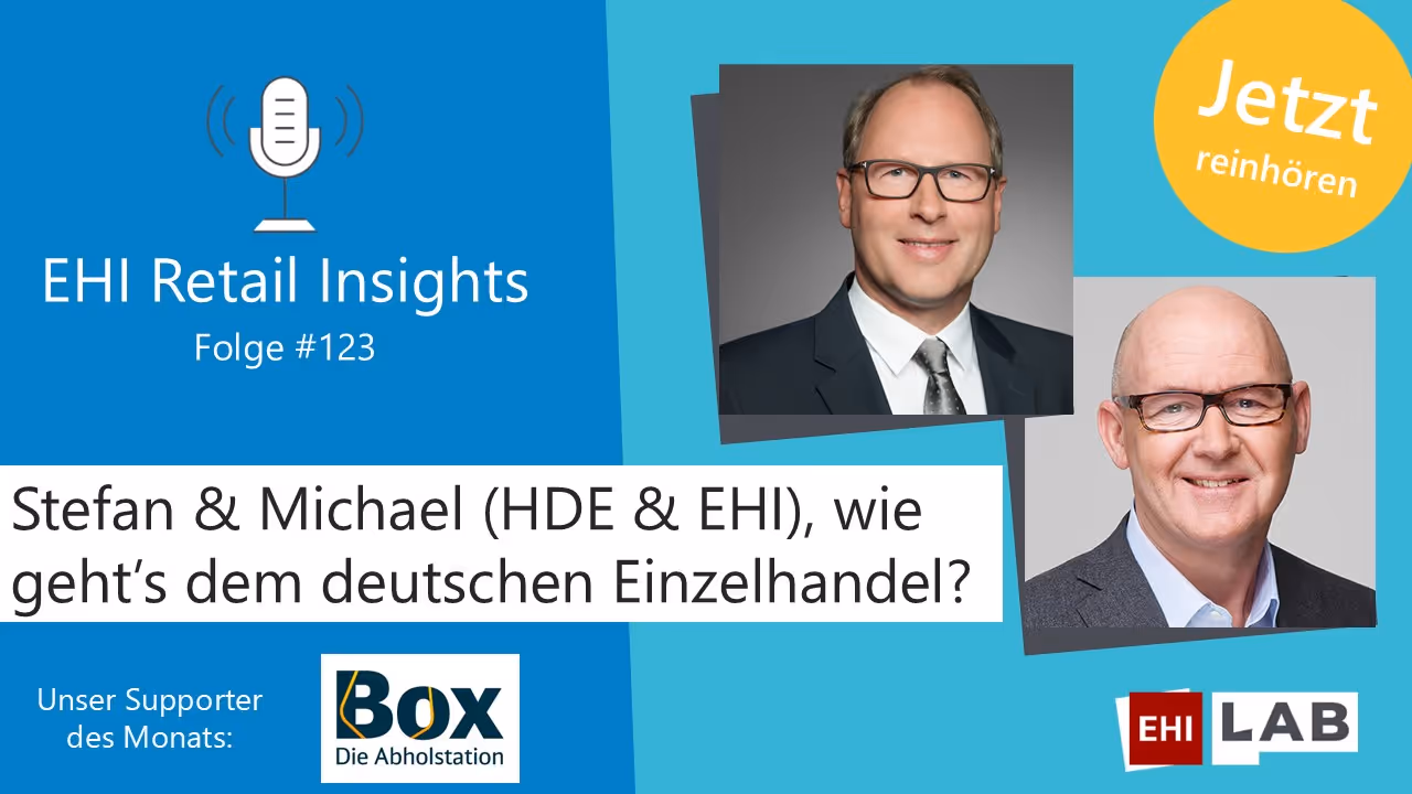 Jetzt reinhören: im EHI-Podcast treffen Stefan Genth, Hauptgeschäftsführer des Handelsverbands Deutschland (HDE), und Michael Gerling, Geschäftsführer des EHI Retail Institute, aufeinander. Gemeinsam diskutieren sie aktuelle Trends und Herausforderungen im Einzelhandel. Von Digitalisierung und Nachhaltigkeit bis hin zu den Auswirkungen des Fachkräftemangels – die beiden Experten beleuchten die Zukunft des Handels und geben spannende Einblicke in die Entwicklungen, die den Markt prägen. Ein Muss für alle, die sich für die Zukunft des Retail-Sektors interessieren!
